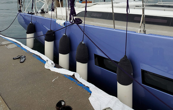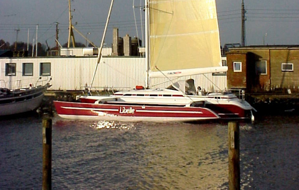 Privilege 445 checking the reefed main in France before sailing to Canada.