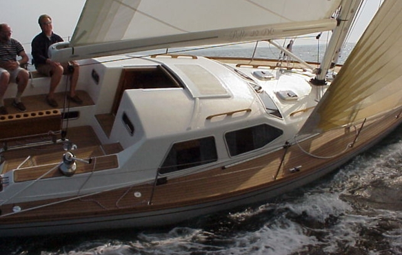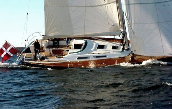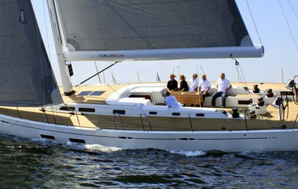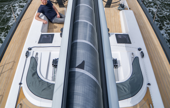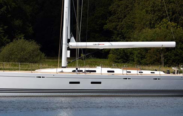 Najad 570 with her driven Furlerboom T-45. The main halyard make the handling to a mere push button action.
