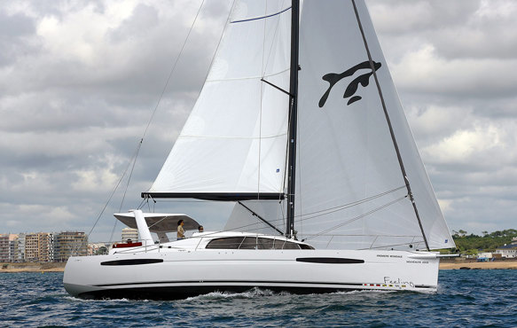 Dragonfly 1200 is one of many examples on offshore multihull with big roach mainsail.